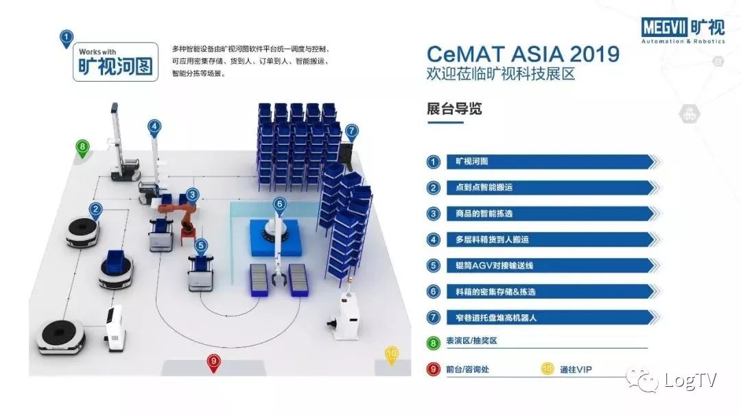 本届CeMAT上,旷视将集中展示T800举升式AGV、S300B滚筒AGV、E150多层料箱搬运AGV、RML、Picking机械手等多款智能设备。此外,旷视自动化集成解决方案也将首次亮相CeMAT ASIA。现场展出的多种智能设备及相应的解决方案都将由旷视河图(HETU)软件平台统一调度与控制。观众可以在现场实地感受旷视河图强大的调度能力和柔性部署特征。