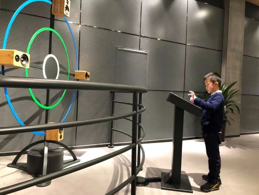 在科学发现馆,同学们通过对声学、数学、力学、电磁学、光学等主题展项的简单操作和全方位互动,体验科学的神奇,启发创新意识。