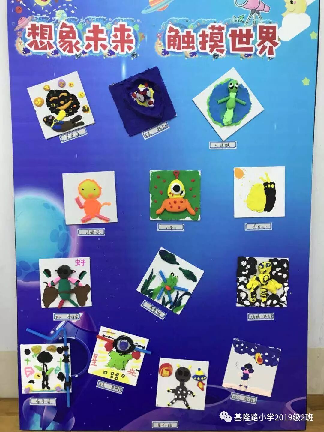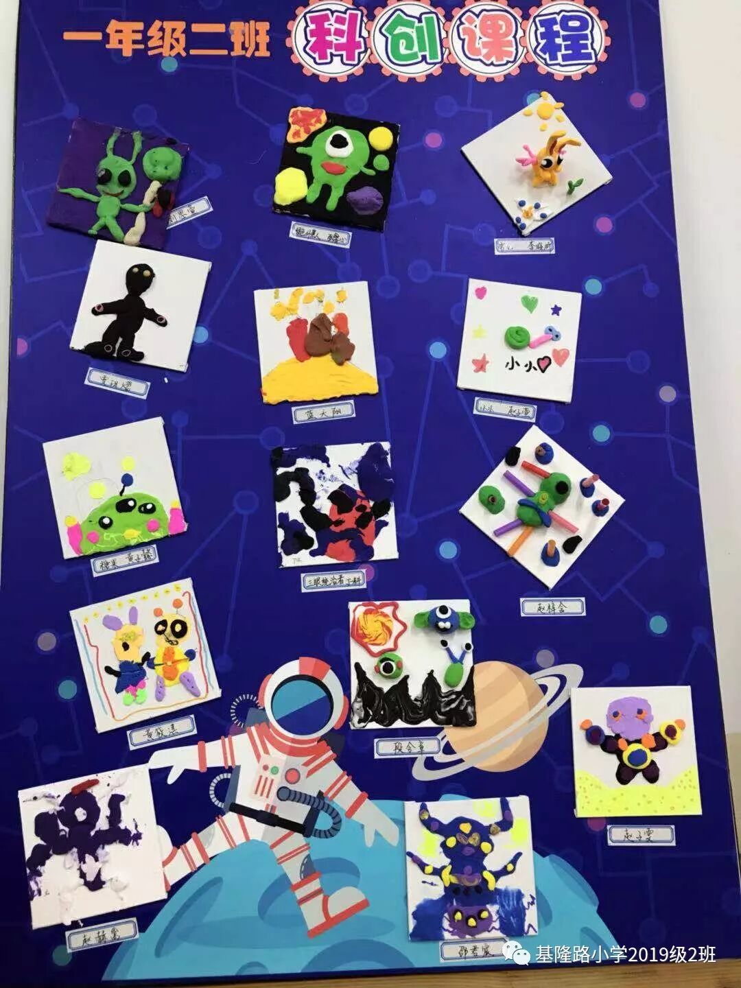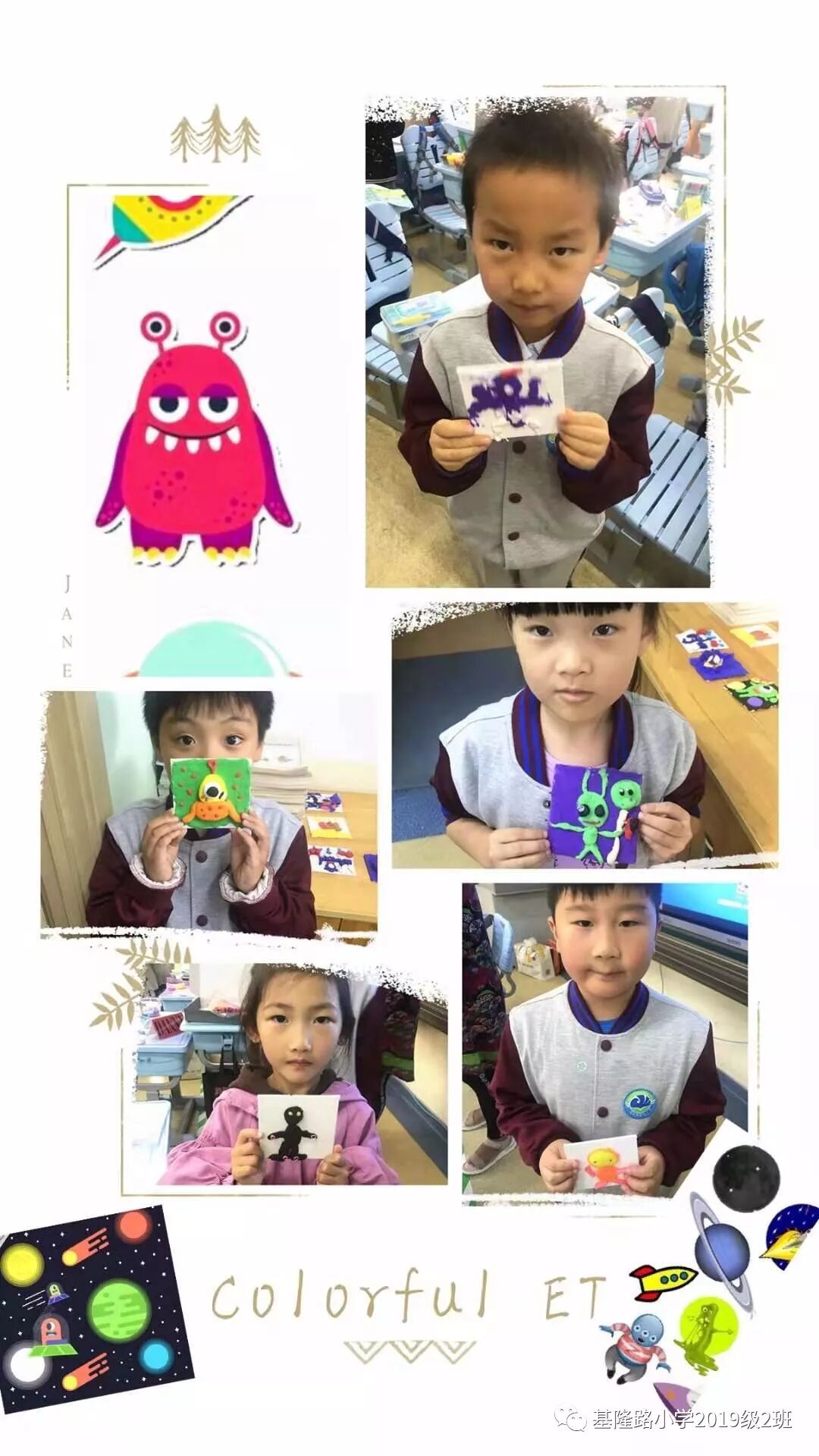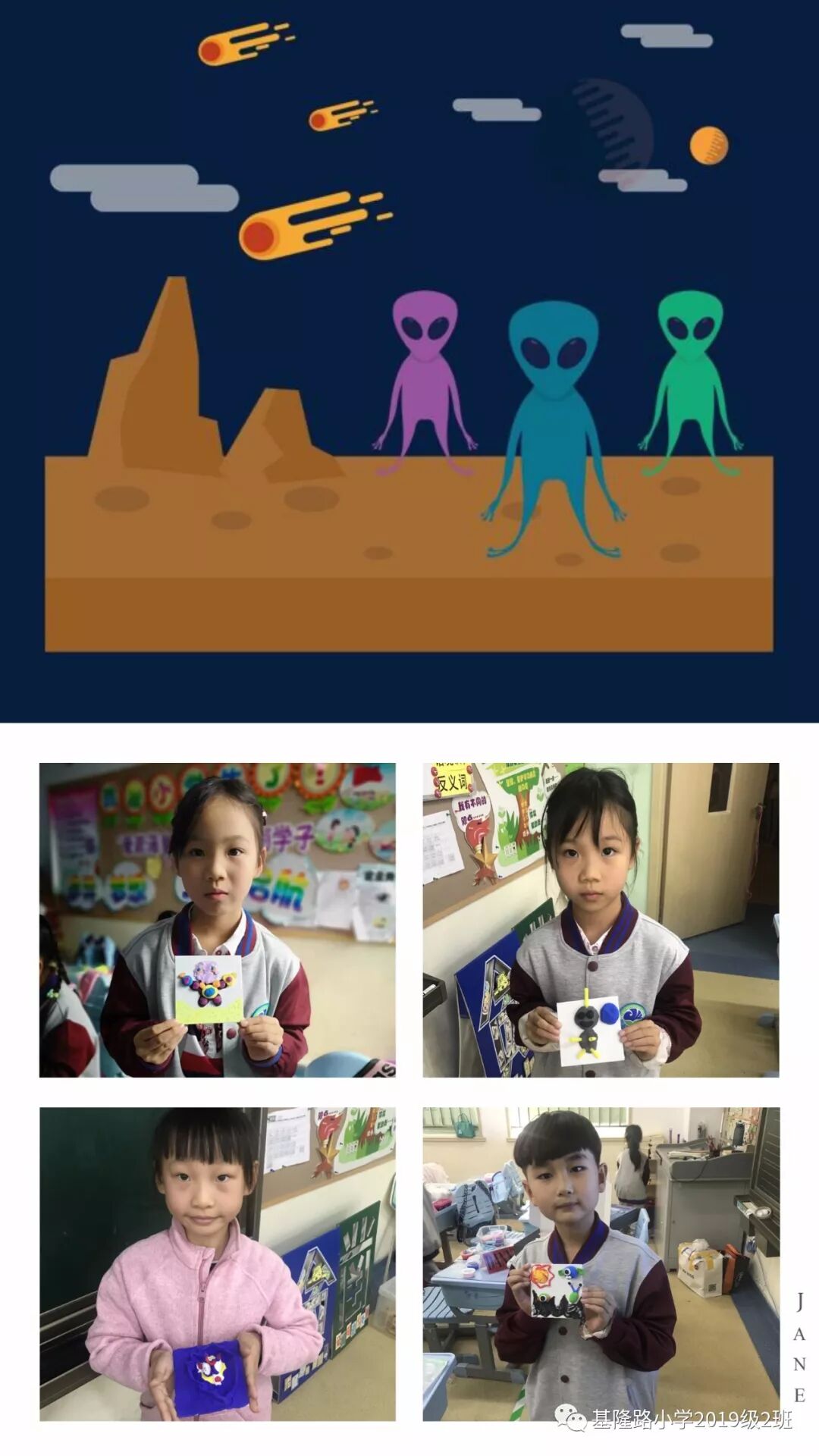 孩子们认真的制作着,努力的思考着,很快,各种栩栩如生的外星人形象就在孩子们小手中诞生了,孩子们开心的和自己的“作品”合影.
