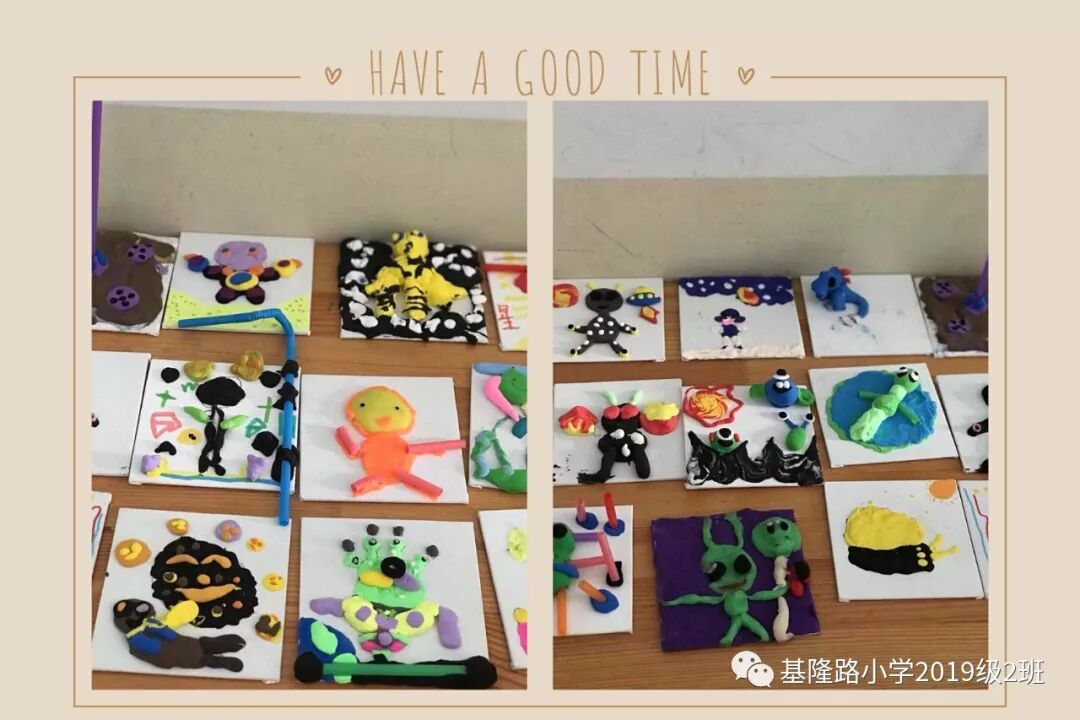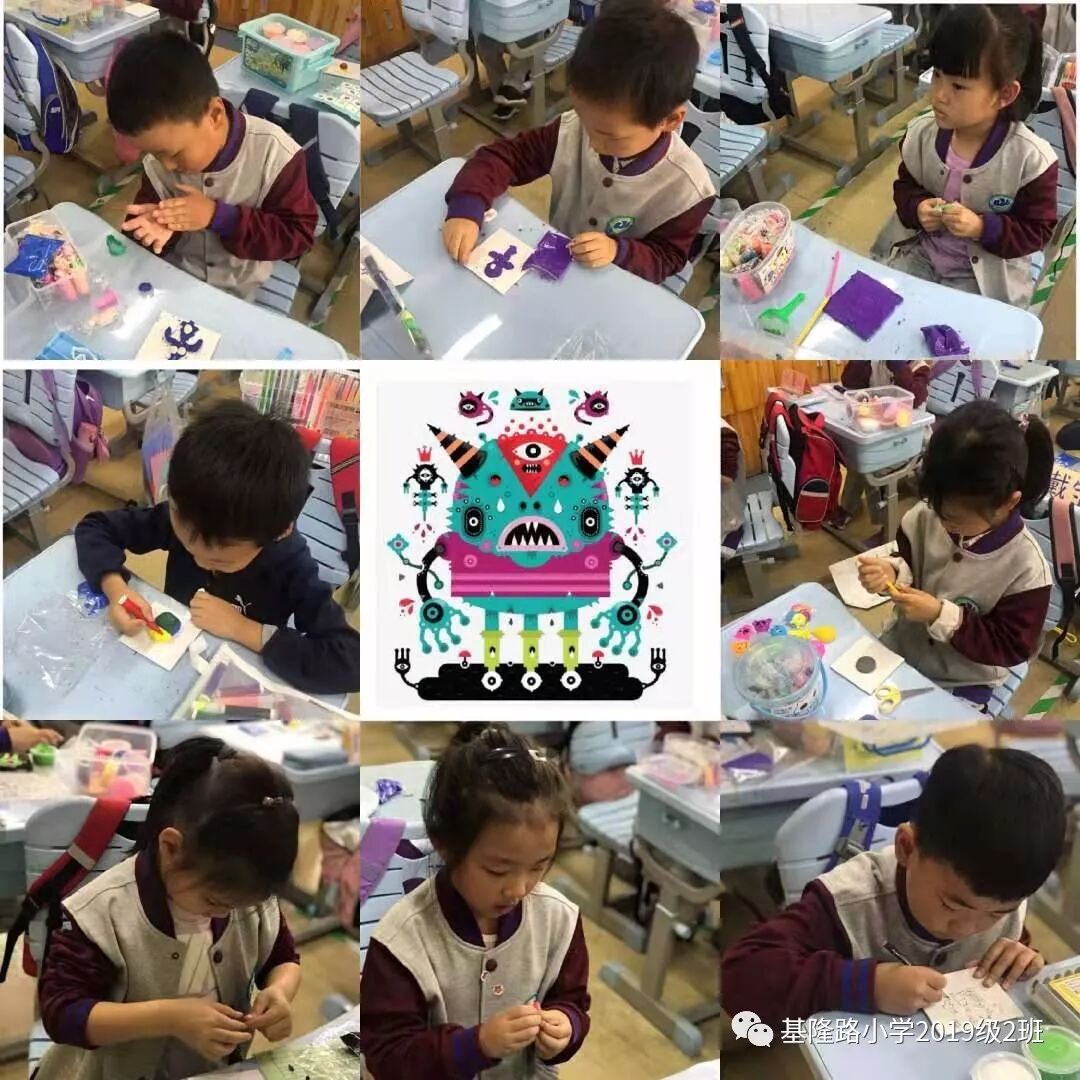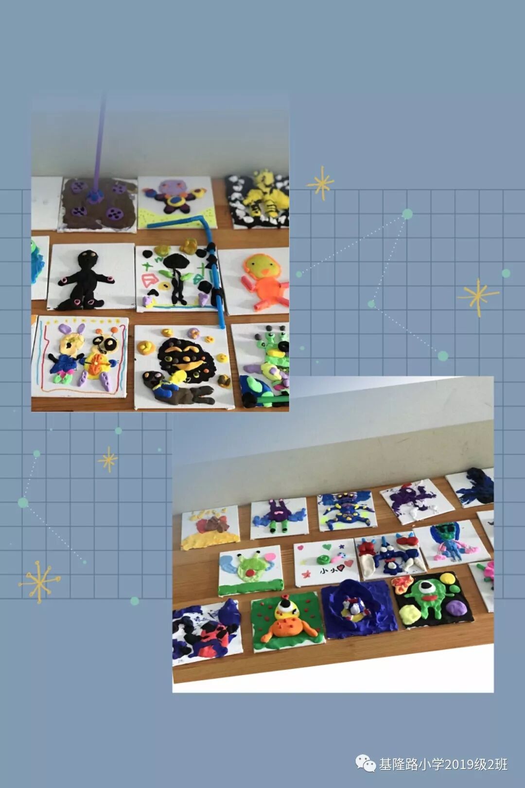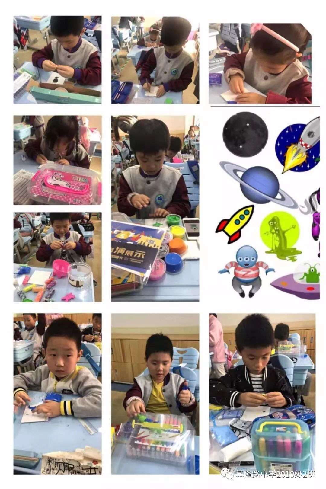 孩子们认真的制作着,努力的思考着,很快,各种栩栩如生的外星人形象就在孩子们小手中诞生了,孩子们开心的和自己的“作品”合影.