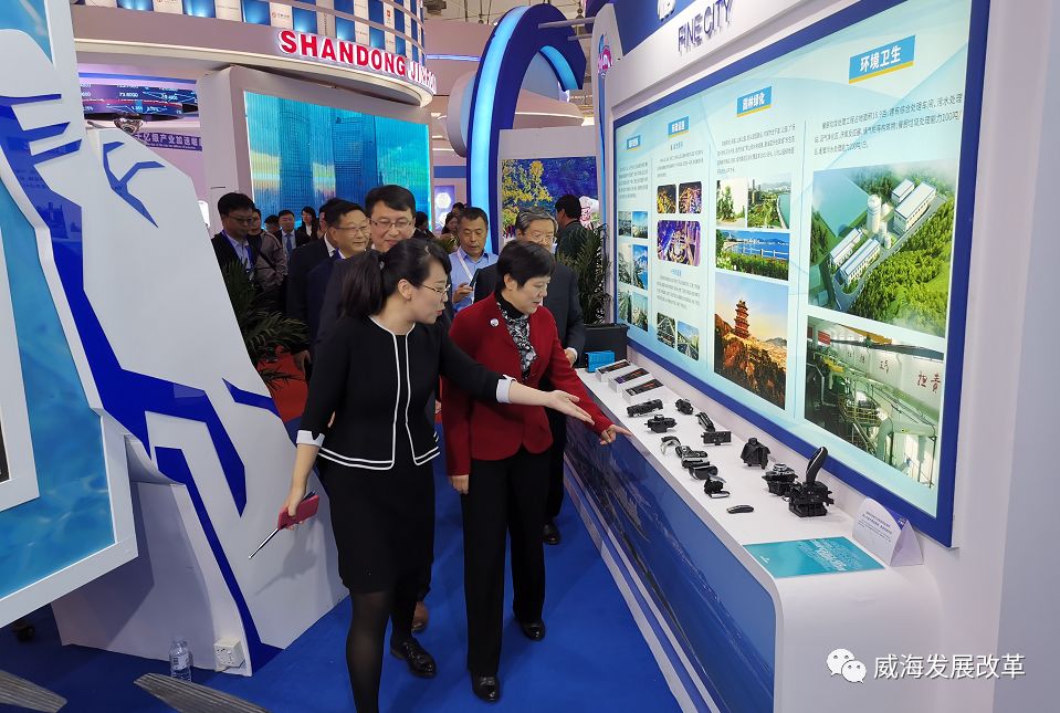 此外,威海馆还通过展板的形式,以生动的图片搭配简明易懂的文字,围绕“新动能”这一主题,突出我市“东拓南延西展”城市发展空间布局和“四港联动”新理念,集中展现七大产业集群、十大高端产业园区、精致城市建设等发展重点,展示我市品牌企业形象、重大创新平台和重大科技创新成就。