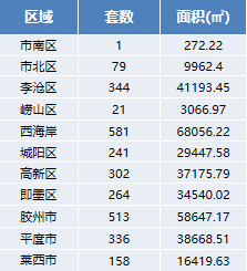 从各区成交情况来看,西海岸继续保持领先,上周总成交581套、总成交面积68056.22㎡,以小幅度优势获得青岛一周楼市成交套数榜及成交面积的双榜冠军;