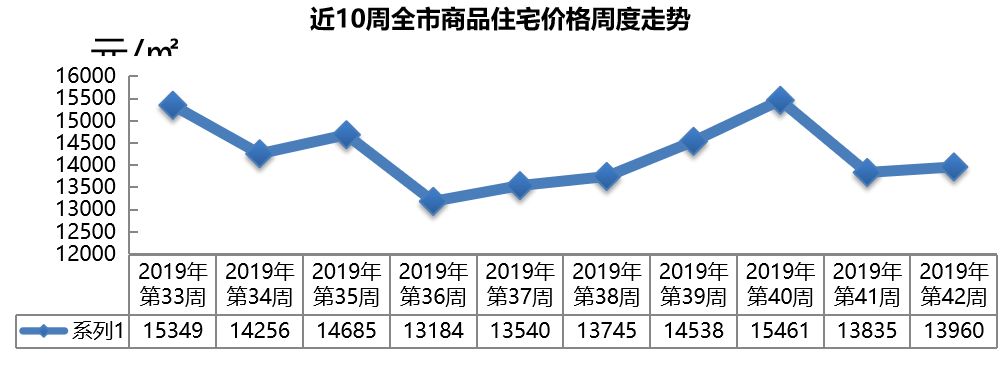 价格方面继续保持小幅上涨,上周青岛新建商品住宅均价为13960元/㎡,环比上涨125元/㎡,涨幅为0.9%。