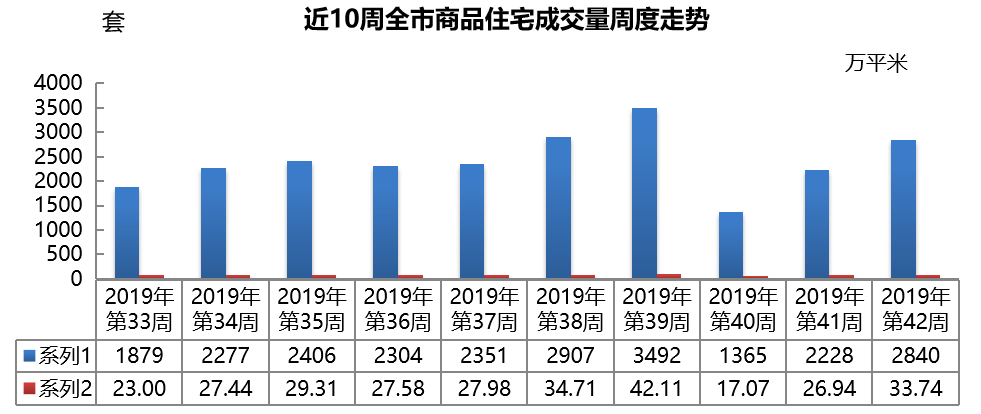 据锐理数据统计,上周(10.14-10.20)青岛新建商品住宅成交套数上涨趋势明显,成交套数2840套,环比上涨27.5%;成交面积为33.74万平米,环比上涨25.24%。