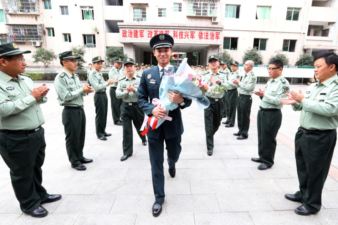 10月10日,区人武部文职人员陈安回到了荣昌。一下车,迎接他的是鲜花和掌声。