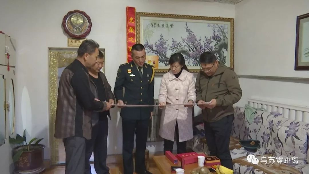 乌苏市退役军人事务管理局负责人一行来到闫疆天家中,与他亲切交谈,详细询问了他的训练情况和受阅情况,对他的辛勤付出和出色完成任务表示衷心感谢并致以崇高敬意。乌苏籍军人闫疆天能参加国庆70 周年阅兵任务,接受党和人民的检阅,不仅是个人的荣耀,也是乌苏市的骄傲。市退役军人事务管理局表示要切实关心他们的生活,全力做好拥军优属各项服务保障工作;同时希望闫疆天在部队继续发扬特别能吃苦、特别能战斗的优良作风,再创佳绩。(文图:夏里哈尔)