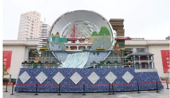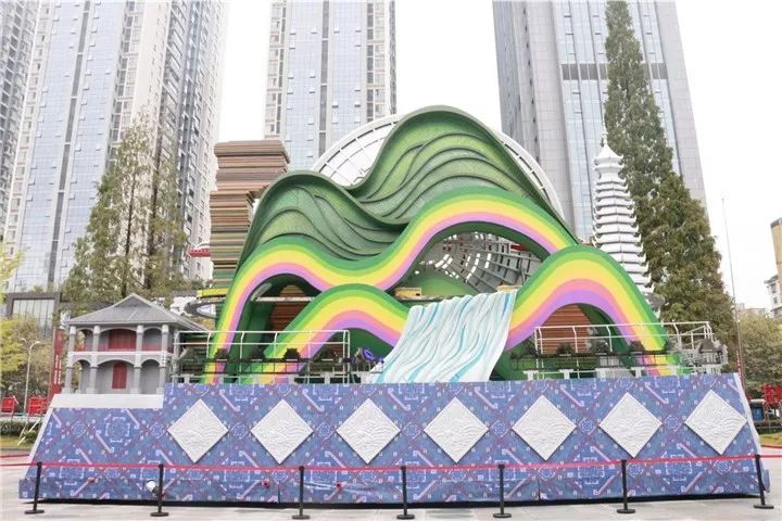 彩车右侧以“天眼”造型为主要形态,展现了贵州在科技创新、天文领域取得的重大成就,同时艺术化处理为镂空框格,形成圆形“取景框”,寓意贵州人民对团结、团圆、圆满美好生活的期待。