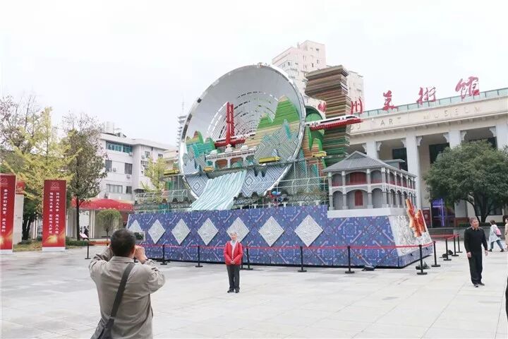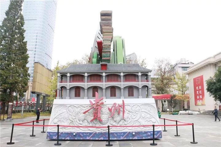 10月20日,贵州美术馆门前,“多彩贵州”彩车经过近10天的安装,已安装完毕,吸引了众多市民前来拍照留念。