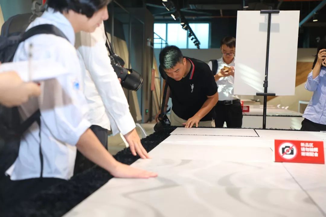 在2019年意大利博洛尼亚展上,混搭(MIX)成为了大热门,各种材料、纹理和气质的艺术组合占据了各大展位。在今天的发布会上,灵骏灰、云水谣、奥秘、点金石、轻罗织等新品,充分发挥了跨界和混搭的艺术美感,彰显与世界潮流同步的高端品牌特质。