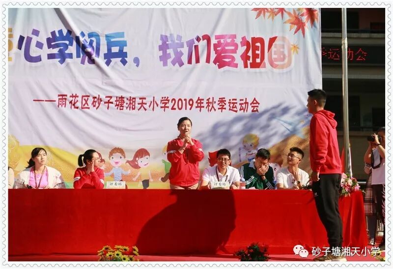 2019年10月21日周一一早上9点整,雨花区砂子塘湘天小学2019年秋季运动会“童心看阅兵,我们爱祖国”校运会正式拉开帷幕。