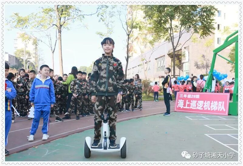你听,“小螺号,嘀嘀嘀吹;海鸥听了展翅飞 ;小螺号,嘀嘀嘀吹 ;浪花听了笑微微……”这是二年级32连海军方队,一群意气风发、精神抖擞的小海军们驾驶着“湘天号”战舰在“蓝色的海洋里”奋力拼搏。碧蓝的天空下海鸥盘旋,应和着悠扬动听的旋律,我们仿佛就是在航行的水手,多未来有无限的憧憬……