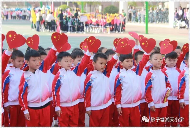澎湃的心绪,燃烧在每位师生心中;喜悦的气氛,洋溢在香甜的操场上。砂子塘湘天小学会继续将爱国主义教育落实于运动中,野蛮其体魄,强健其精神,塑造其理想。