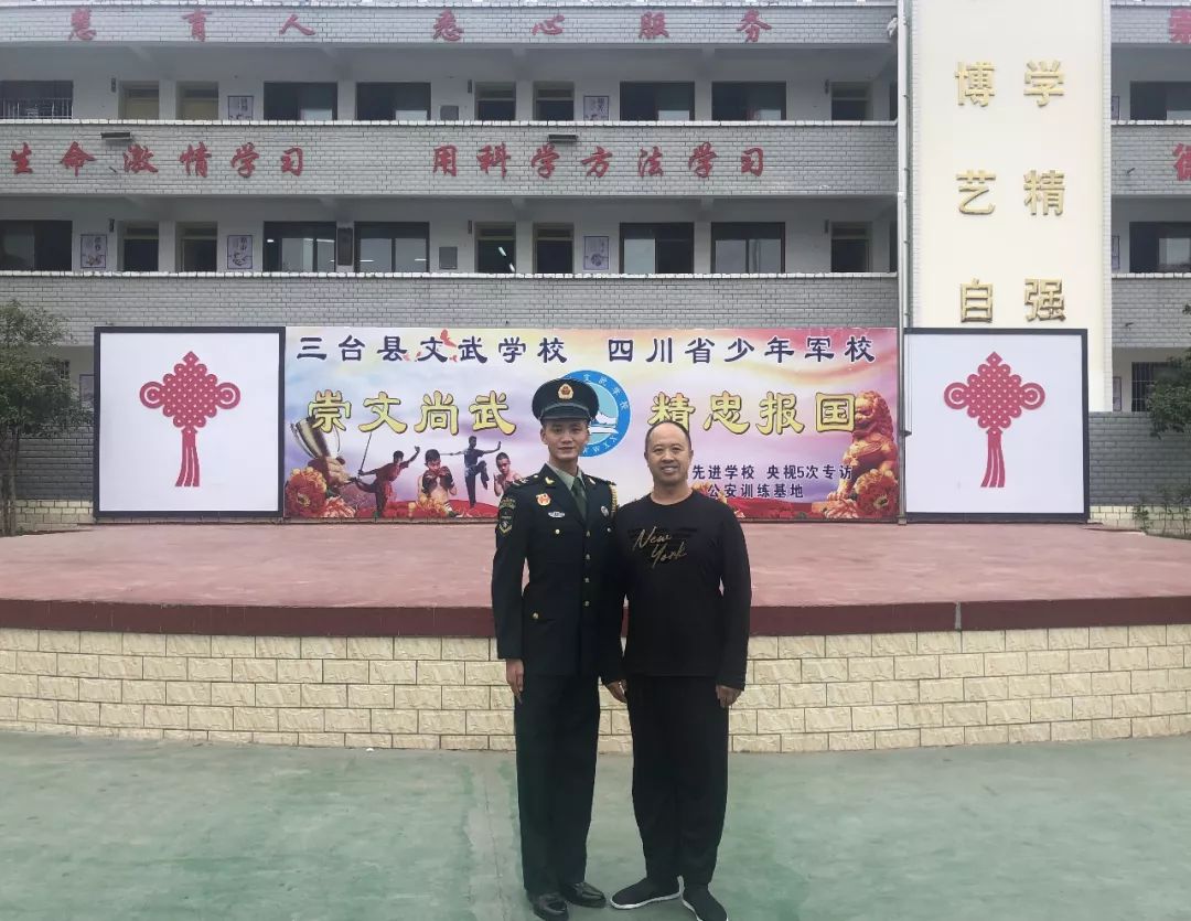 面对熟悉的老师和教练;面对曾和自己朝夕相处的学弟和学妹;面对自己曾经飞汗如雨的训练馆和运动场;彭真微心潮澎湃,他说:“三台文武学校的学习生活在我的人生中留下了深深的烙印,如果没有当年文武学校的培养,给我扣好人生第一颗纽扣,给我磨砺出坚强意志,练就强健的身体素质,我就不可能顺利通过这次选拔,接受习主席和祖国人民的检阅。”他再三勉励同学们:要从小立志,勤奋学习,刻苦训练,崇文尚武,学好本领,将来献身国防,为母校添彩,为家乡争光。