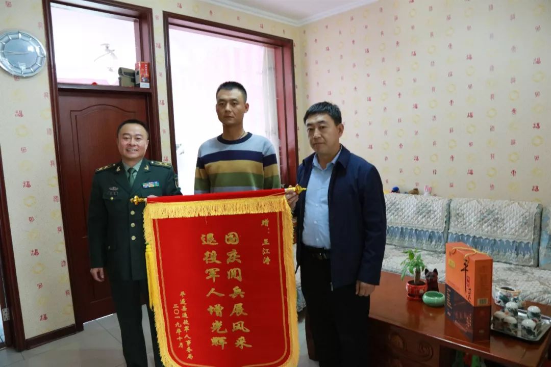 来源中央广播电视总台|平遥国防教育 | 平遥视界10月21日上午,县人武部政委陈明和退役军人事务局赵财茂及相关工作人员来到我县参加国庆阅兵的3名受检阅官兵的家中,感谢他们为部队培养了优秀军人,为祖国争光,为我县争得荣耀。