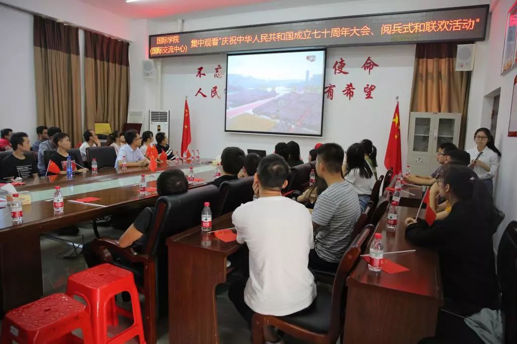 在逸夫楼东附楼C304,国际学院部分老师、学生以及留学生一起观看了现场直播。气势恢宏的阅兵式和盛大的群众游行活动让留学生们十分震撼,对新中国成立70年来的发展成就赞不绝口。来自孟加拉国的kamelia在文理学院学习有2年多了,她看完阅兵式和群众游行活动后说,我非常珍惜在中国学习的机会,现在我正在学习中国历史,了解中国;我相信中国是最好的国家,我爱中国,将来我希望永远在中国生活。