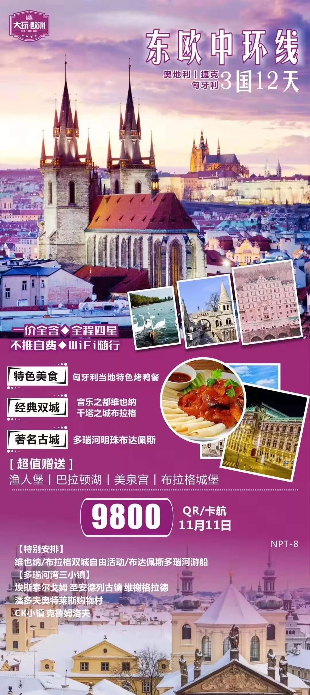 16、【东欧捷奥匈斯】---东欧,一个充满文化和地域风情的旅游胜地,悠久历史的大城小镇散发着浓郁的人文气息,是艺术家们的乐土。维也纳,世界音乐之都。不少音乐爱好者远赴维也纳,只为感受一回古典音乐的气氛。但也许你是为茜茜公主而来,想要看一眼茜茜公主美丽的倩影。你可以去美泉宫,当年茜茜公主的夏宫,与法国的凡尔赛宫相比,有过之而无不及。