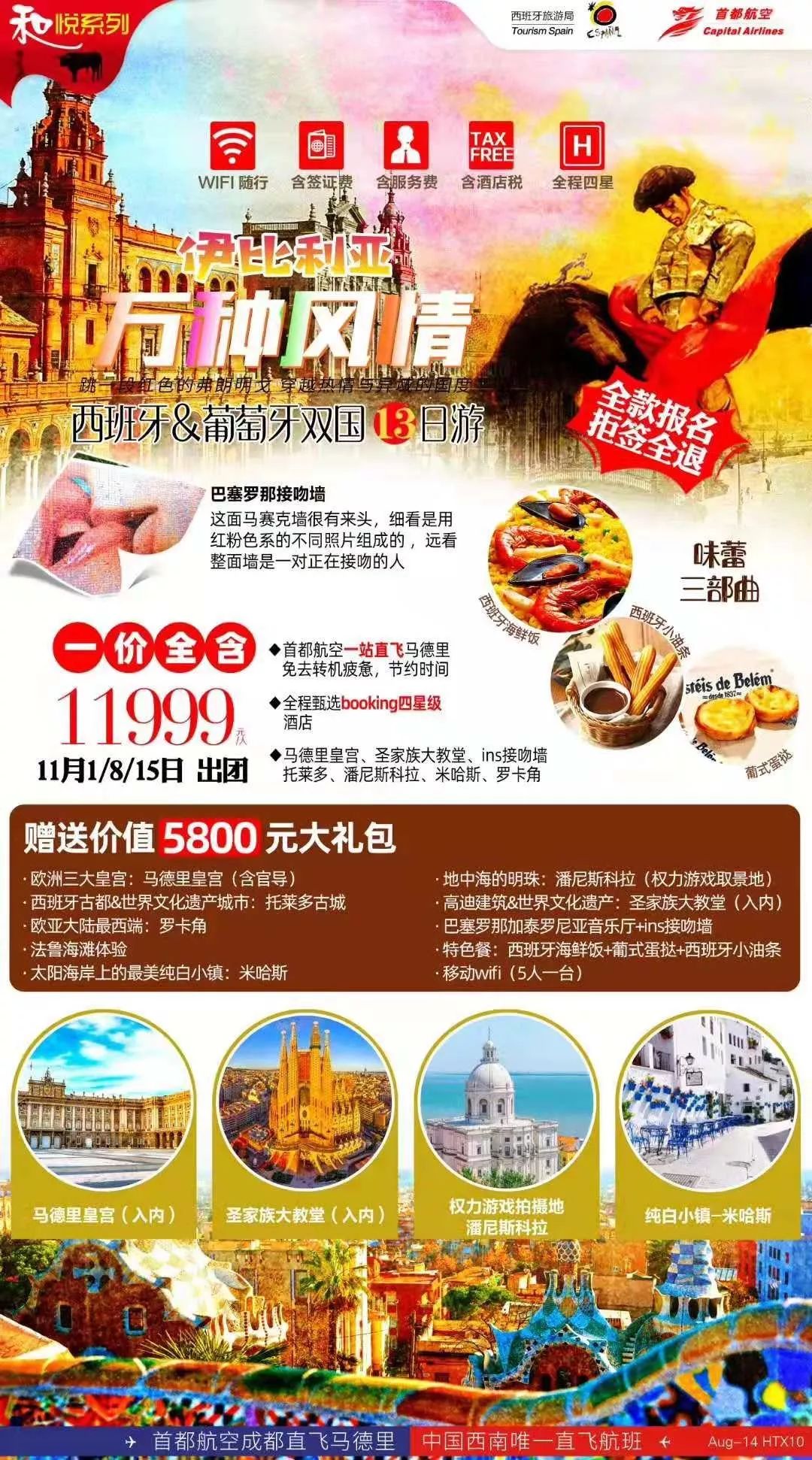 17、【西班牙+葡萄牙】---西班牙和葡萄牙,两国10城,沿着西班牙骑士---唐吉诃德之路,我们一起探访风车,客栈,中世纪古堡,两国的各式文化和美景,再去寻找三毛的爱情足迹:“每想你一次,天上飘落一粒沙,从此形成了撒哈拉,每想你一次,天上就掉下一滴水,于是形成了太平洋。”