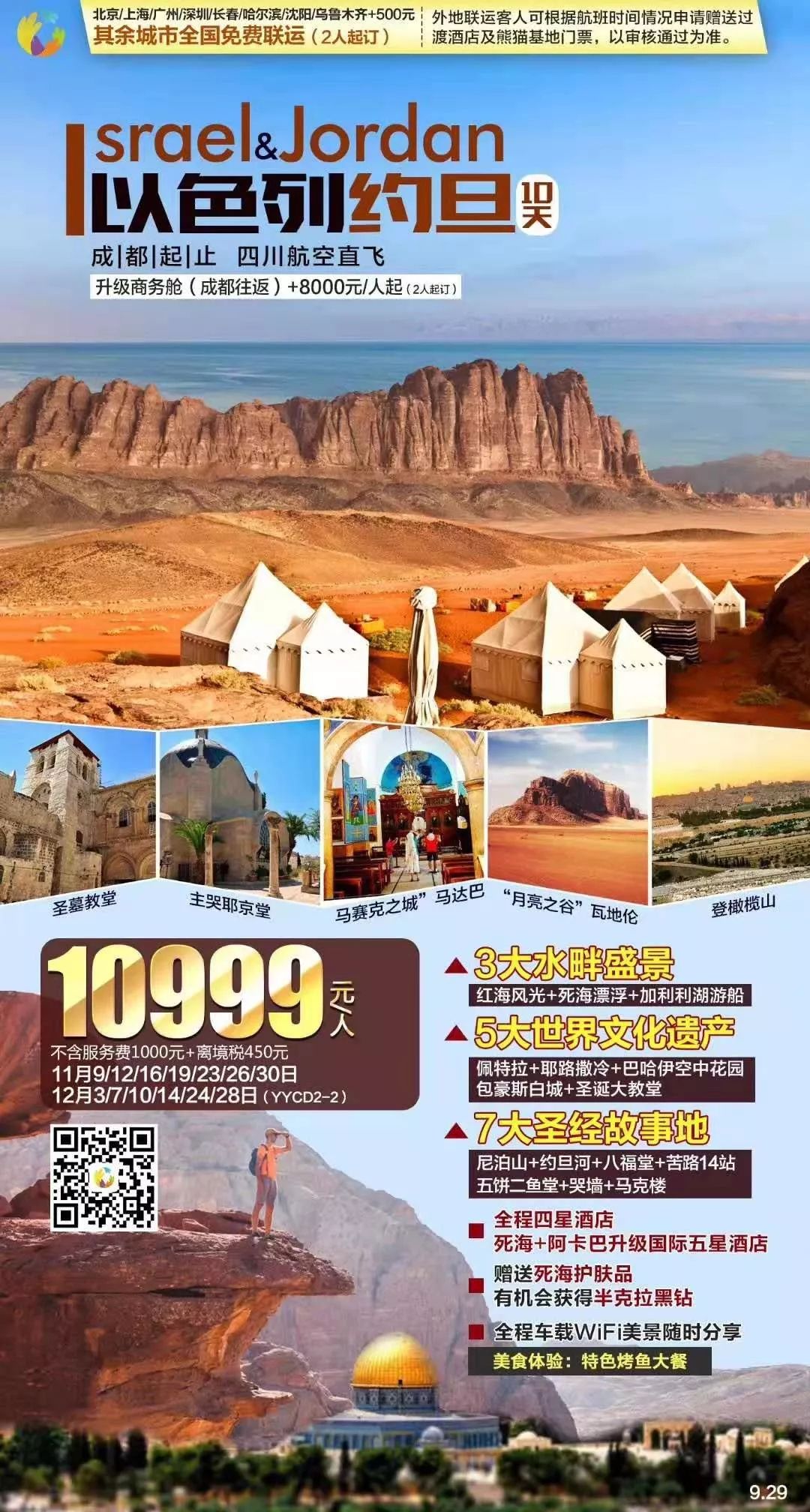 28、【以色列+约旦】---以色列:世界上唯一以犹太人为主体民族的国家,经历千年风雨屹立不倒,探秘上帝眷顾的应许之地;约旦:一个比较小的阿拉伯国家,但相对周边国家来说约旦政治经济和文化生活等方面稳定,约旦人民生活较为富裕,在伊斯兰国家中相对开放,旅游业是约旦支柱产业之一,佩特拉古城,死海和瓦迪拉姆沙漠等景点成为世界各国游客探险旅行和休闲度假的首选目的地。