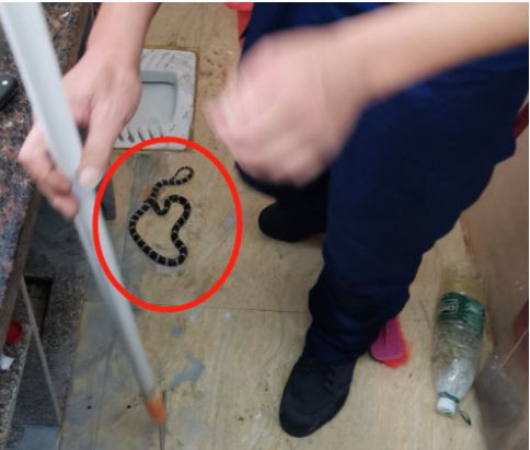 最后在屋内的洗手间处发现了毒蛇的踪迹