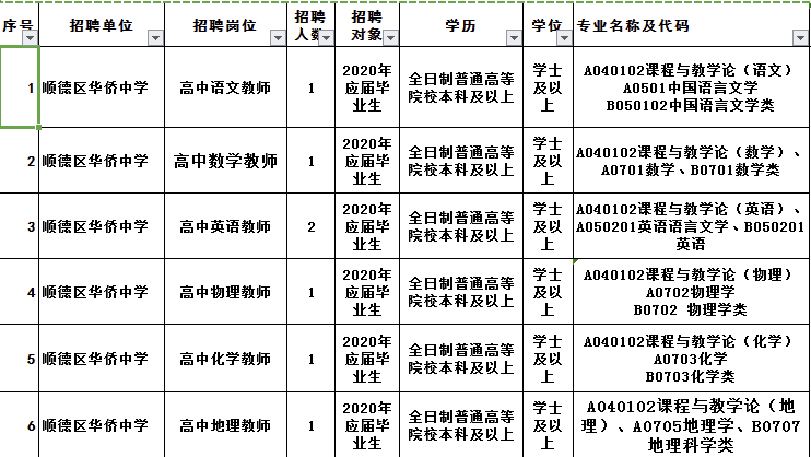 (详情见顺德区教育局区属学校赴高校设点公开招聘教师公告) 顺德区区属学校赴北京师范大学、陕西师范大学设点公开招聘教师岗位表