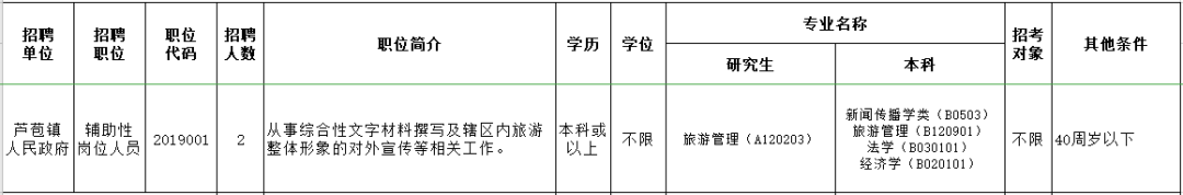 各招聘单位、职位、人数、条件及其他情况详见下表。