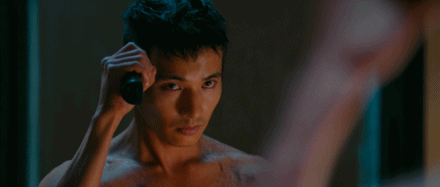 影片中,元斌有一个赤裸上身、亲手剃短长发的镜头: