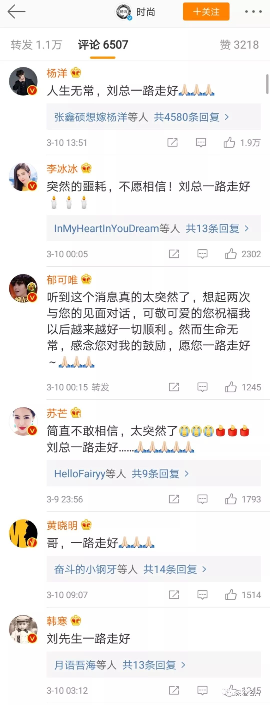 刘江被成为中国的“时尚教父”,他创建了多本时尚杂志,并且和娱乐圈保持了很好的关系。因此,这一次他的去世,也让整个娱乐圈都在悼念。