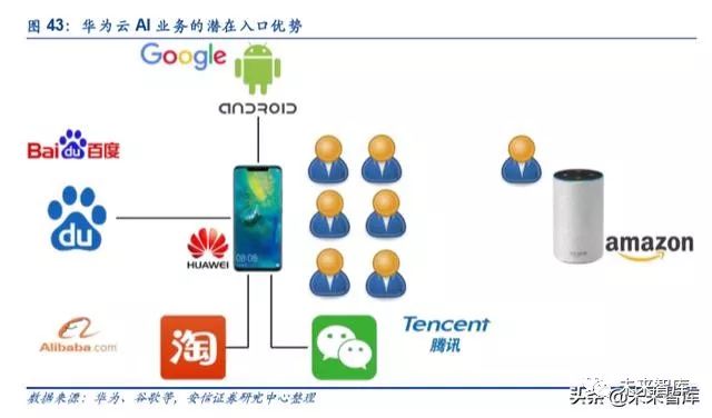 (3)把握终端优势,存在把握入口潜质。华为 Mate 和荣耀系列手机始终保持较高的市场占 有率,建立了很好的用户基础。在 AIoT 时代,手机是天然的 AI 平台导流工具。因而,华为 不需要像谷歌通过 Android 一样需要依托其他硬件产品,或像亚马逊一样通过 Echo 去培养 用户习惯。