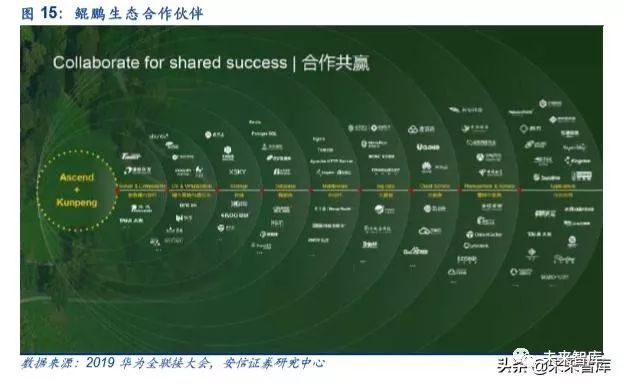 打造鲲鹏计算产业,网罗优质上下游企业。基于 openEuler 的 OS 以及配套的数据库、中间 件等平台软件是鲲鹏计算产业的基础。为壮大鲲鹏计算产业,华为建立了 openeuler.org 社 区,开源 OS 源代码,并提供各种基础工具,缩短厂家构建基于openEuler 的发行版OS 的 开发周期。同时,鲲鹏计算产业将对合作伙伴进行转向支持,联合合作伙伴 9 个月完成 3000+ 应用的代码迁移和性能优化,计划 2020 年 Q1 完成重点行业标杆项目建设,可满足 20%业 务场景迁移至鲲鹏计算平台,形成重点行业重点业务的技术架构部署参考设计。鲲鹏在服务 器、数据库、公有云等领域与大量 A 股上市公司建立广泛合作,共同推进产业发展。