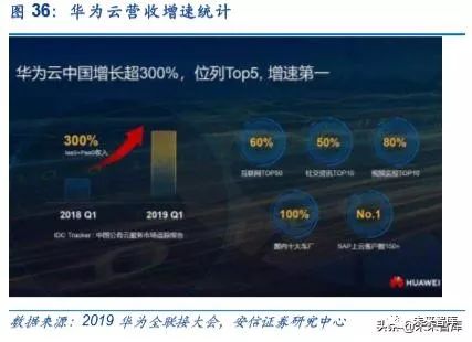 (1)全栈技术打通,构建业界最完备体系。通过对比可以发现,谷歌云在 AI 业务上取得的 领先优势除得益于自身强大的算法能力以外,与其构建的全栈系统体系密不可分。然而,谷 歌的全栈技术产品仅止步于芯片、框架、平台,并未构成完整闭环。相比之下,华为搭建了 自指令集架构直至行业解决方案的完整全栈结构,因而在优化性能、压缩成本上取得优势。