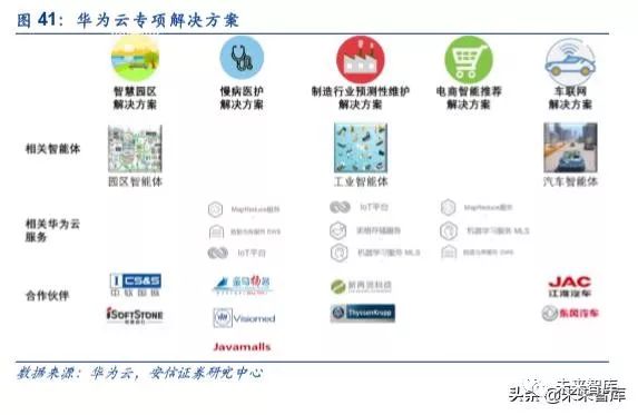 EI 企业智能华为云针对 AI 业务提供半定制化解决方案的主要承载。华为云在国内 18-19 营 收增长超过 300%,具备巨大的发展潜力,在互联网、社交咨询、视频监控、车厂等用户中 均获得大量新增订单。华为云 EI 企业智能提供集群服务,用友强劲算力。在 Atlas 900 的加 持下,能够做到全球最快,并能做到弹性伸缩、按需使用。EI 企业智能针对 AI 业务推出相 关智能体和专项解决方案。