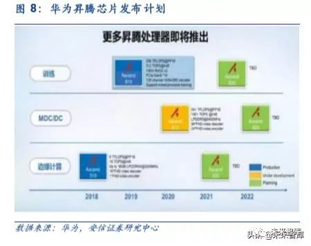 昇腾 610 呼之欲出,进军智能汽车 AI 芯片。在华为发布昇腾 910 芯片的同时,华为副董事长、轮值董事长徐直军同样表示未来还计划推出昇腾 610,主要面向自动驾驶场景。在智能汽车产品上,华为早在 2018 年 12 月就公布了自动驾驶的汽车大脑 MDC 600,并在 2019 年高调宣布与四维图新进行合作,并已经取得了部分国内车厂订购。在昇腾芯片的加持下, MDC 将得到进一步性能提升。同时,华为的昇腾芯片发展计划正在有序展开,昇腾 920、 昇腾 320 也将在 2021 年后逐步推出。