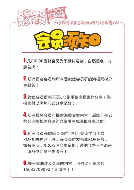 凡亭手绘POP工作室为满足各行业手绘POP从业者寻找素材的需求,特推出凡亭POP素材会员群,为广大会员提供全面、实用的手绘海报素材!