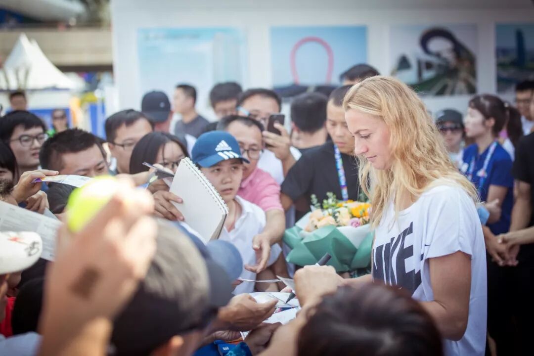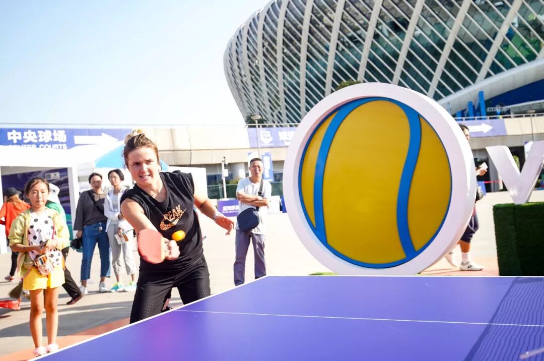 那边投篮忙,这边乒乓球高手又来了斯维托丽娜来到体育文化节乒乓球互动区与观众和小朋友们打起了乒乓球她会为对手的快速回球惊呼也为自己的一记帅气抽球喝彩改行当乒乓球运动员也不是没可能~