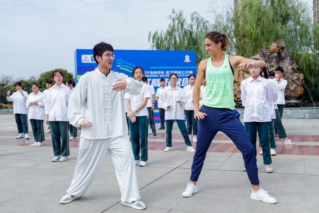 马蒂奇被太极功夫吸引拜武汉枫叶国际学校的同学们为师学完一组太极拳后意犹未尽,她又拉着男同学又学了几招。仙荷校园,功夫少女正在修炼