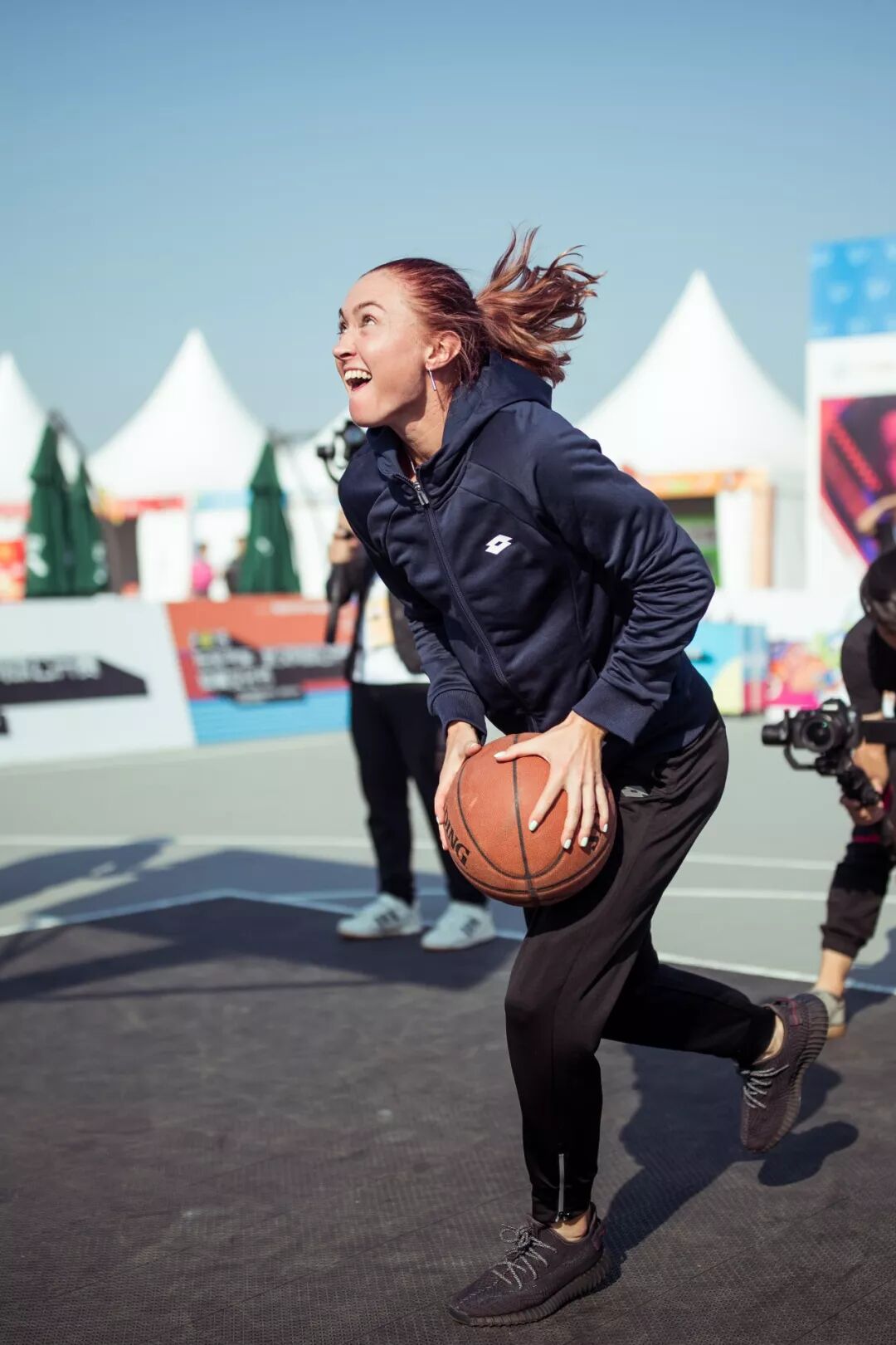 经过嘉年华篮球场,她还秀了篮球技巧运球迅速带球熟练,一步飞跃漂亮投篮这明明是篮球健将吧~