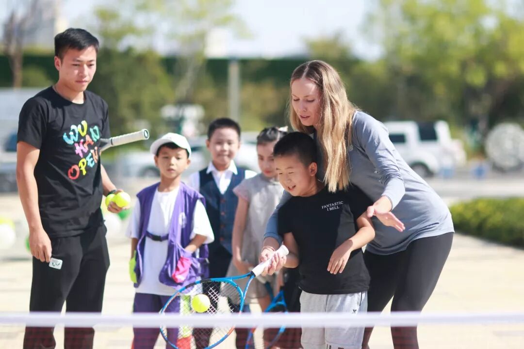 改行篮球、乒乓运动员跨度很大其实改行老师需要入乡随俗老师来了的第一句就是“吃了吗?”柯林斯一亮相就惹得全场大笑柯老师手把手教授小朋友网球的挥杆技巧有名师指点,更多的小朋友爱上网球啦