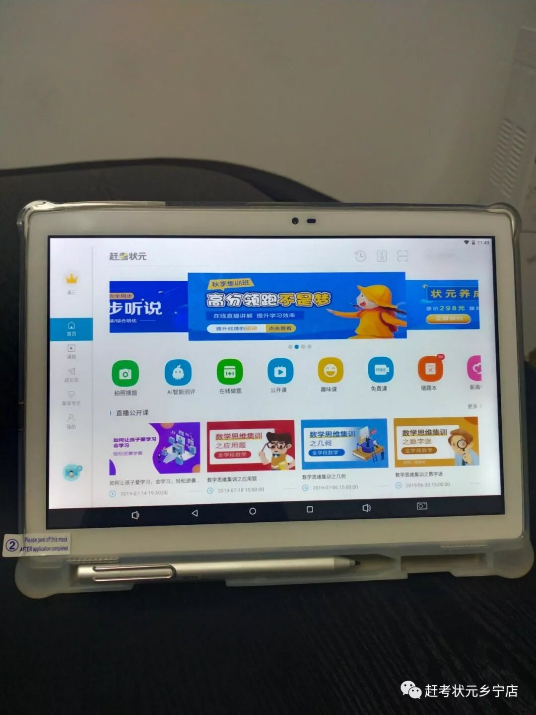 智能学习平板我们原价3558元的智能学习平板,现在只需2900元!1. 同步视频:小学、初中、高中所有学科、全国各大版本教材如:人教版、北师大版、华东师范版、苏教版、沪教版等高达38000节。课程更新使用与学校授课进度保持一致。使学生使用更容易理解和掌握,适合提前预习,同时还更适合基础薄弱的学生进行同步复习,更上学习进度。2. 专题课程:全国中考、高考金讲专题、小初高衔接课程、心理辅导、趣味课堂、学习方法等特色专题,实用性、针对性、趣味性强,适合同学们把所知识灵活应用和专项拔高。3. 直播公开课:每周定期推送免费直播课,知识点、学习方法等课程,错播直播课还可以看回放。4. 直播精品课程:线上互动直播教学,课后作业在线批改,重难点全面辅导,寒春暑秋四季同步及专项拔高课程应有尽有。5. 搜题拍照:题目拍照上传,详细解答及分析;题目自动加入错题本反复练习加强巩固,同时推荐相应的题型练习题及知识点课程,在线学习学练结合逐步击破重点、疑点、难点。6. 课文朗读:在线随时收听1--9年级语文、英语教材配套课文朗读,跟着老师一起朗读课文,强化训练巩固知识。7. 口语测评:英语教材完全同步口语训练,人工智能口语智能打分,精准定位学生英语掌握水平。8. 学习工具:包含作业学习组、题库中心、同步电点读、错题本、口算卡、能力测评、名校试卷、志愿填报等学习工具。9. 家庭教育:亲子沟通、情绪管理,针对青少年的一系列心理健康教育,帮助家长与现时代孩子相处。10. 智能小状元:人工智能语言,学习好帮手。会说话的小状元。你问她答、趣味学习、快乐成长。