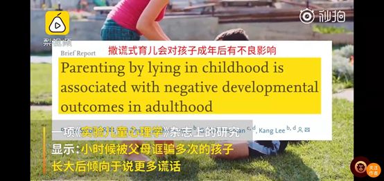 《实验儿童心理学》杂志上的一项研究显示,“撒谎式育儿”会对孩子成年后造成不良影响,有可能面临社会心理调节问题。