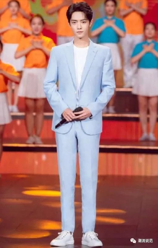 肖战现在的人气就像是当初的李现一样,一部《陈情令》就让她成为了无数女生的新墙头,而之后的一举一动都成为了微博的热搜,在舞台上身着蓝色西装的他,就像是清爽的王子一样。