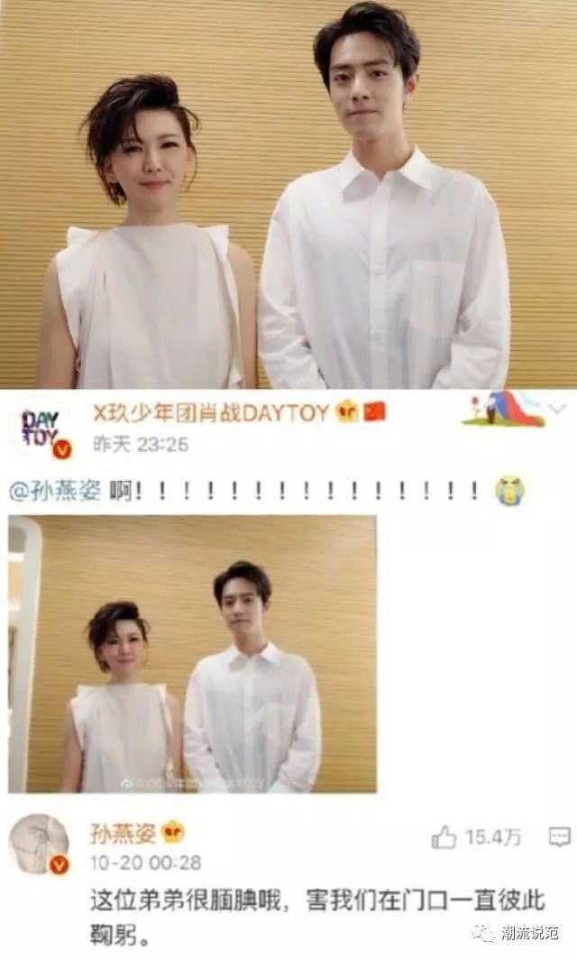 肖战的偶像是歌手孙燕姿,在最近的活动中,肖战微博晒出与偶像孙燕姿的合照,恭喜多年死忠粉追星成功!只会发“啊”和无数个“!”的肖战,一脸害羞乖巧的样子,是见到偶像时的我们没错了,真是太可爱!