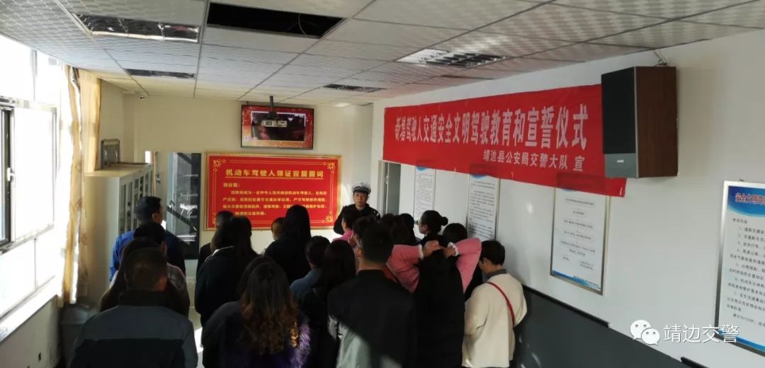 为进一步深化文明交通进驾校“五个一”工作,大力增强驾校学员交通安全意识、法制意识、文明意识,从源头上预防和减少道路交通事故,2019年10月22日,榆林靖边交警走进安源驾校播放交通安全警示教育片,宣传交通安全知识。