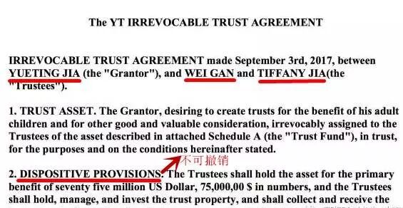 根据留美工程师顾颖琼博士从洛杉矶律师助理手里拿到了贾跃亭的irrevocable living trust 【不可撤销的生前信托】的其中一份草稿文书【信托名字叫THE YT IRREVOCABLE TRUST 】。