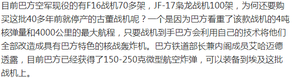 这份大礼正是目前巴方非常紧缺的,36架幻影V战斗机,而且这批战机在巴方的要求下还进行了改装,更适合巴方的作战风格和作战环境,更引人注意的是,这批战机全部具有核打击能力,到时候会部署到的巴方远程航空部队。这批战机早就从埃及空军退役出来,并且封存了很久,所以卖给巴方的价格也非常低,尽管这样,这批战机对于巴铁而言也是来之不易,经过长达一年多的谈判才达成最终协议。
