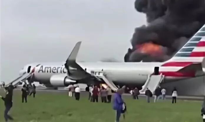 经查,第二段视频,为2016年10月28日发生在美国的客机起火事件。(如下图所示。)