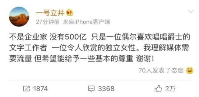 前段时间,有媒体爆出李亚鹏与一女子牵手现身,并且是一个500亿的富豪。李亚鹏在微博上公开回应“不是企业家,没有500亿,只是一位偶尔喜欢唱唱爵士的文字工作者,一位令人欣赏的独立女性。我理解媒体需要流量,但希望能给予一些基本的尊重,谢谢!”算是承认了恋情。