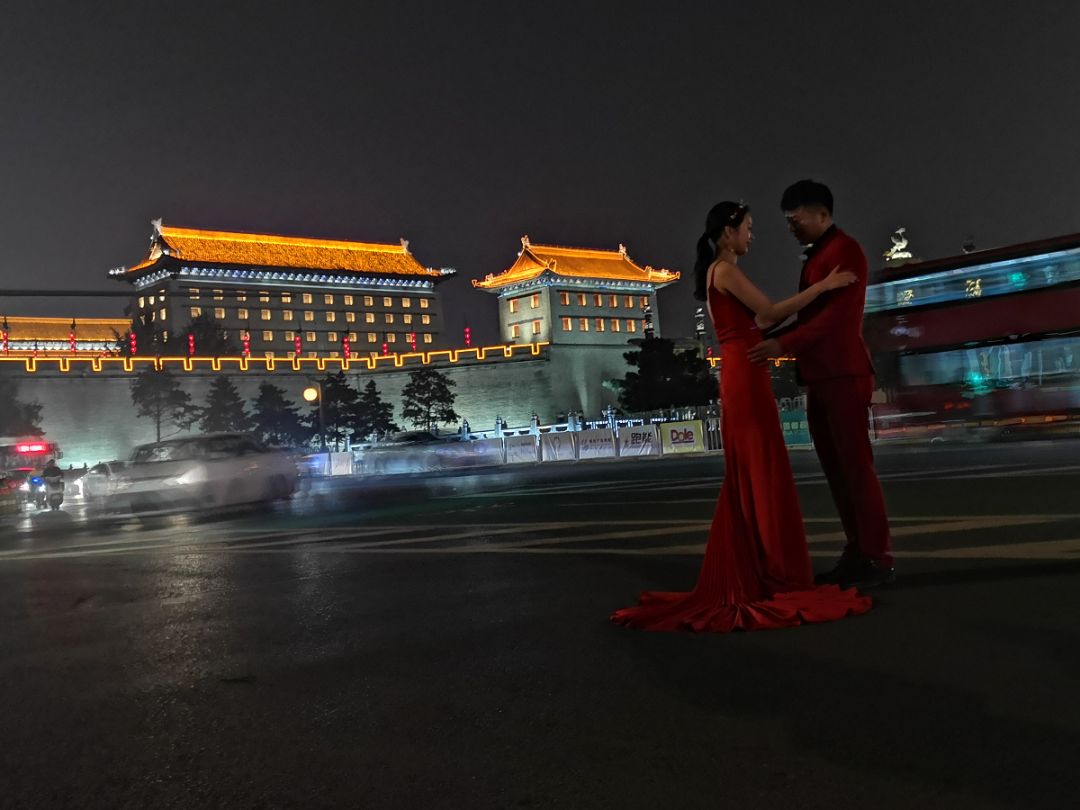 晚上沾足了兵哥哥的光,有个17年未见的战友请他吃饭。兵哥哥酒量早有见闻,但是他的战友更加彪悍,你来我往,喝了四瓶白酒,太凶残了。回酒店的路上,在城楼遇到了拍夜景婚纱照的,令人大开眼界。