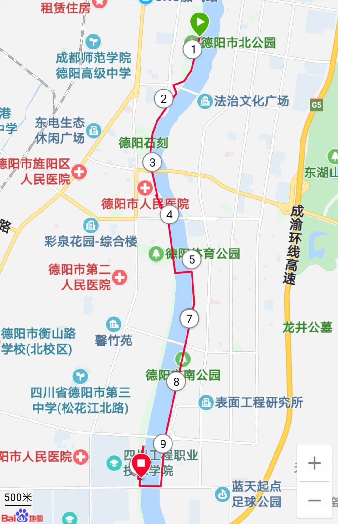 其实以前最多也就跑过十公里,还是17年的时候。为了此次比赛,特意翻出了落满灰尘的16版跑鞋,还好没褪色。信心满满的去河边公园跑步,结果20分钟跑了三公里就累得气喘吁吁,边走边喘气的回了屋子。此后的跑步基本只在五公里徘徊。国庆节假期期间回了德阳,有天下午睡醒,想起好久没吃工农村的凉皮了,干脆跑步过去吃吧。地图上看了下距离,沿河跑过去十公里左右,可以跑过去,就算是个长距离练习。结果为了凑够十公里,愣是在河边的公园绕了圈圈,然后顺路去吃了凉皮,点了两份。