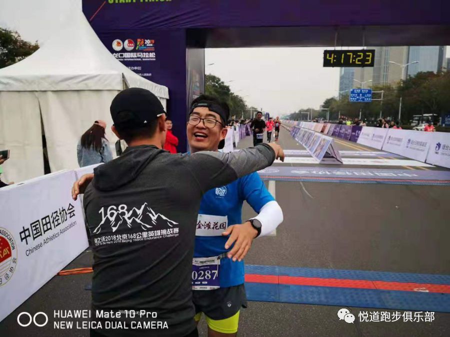 为了迎接自己的首马,十一假期买了一双新鞋,为了能在今天的比赛中穿它,5号那天直接穿着新鞋跑了个35公里的长距离,结果是前脚掌磨起了一个水泡,因为还有两个周就要比赛了,急忙咨询大咖们该怎么处理,挑破、放脓,在比赛前完美痊愈。后来在两个周的思想斗争下,今天还是穿上了新鞋,结果可想而知,在十五公里处右脚就已经磨起了一个血淋淋的大血泡,接下来的近三十公里就在不断地调整跑姿,先是脚后跟着地,减少一半的前脚掌损伤,再就是用五个脚趾支撑,最后就是减少右脚触地时间。这样坚持到35公里时导致了新问题,右髋关节痛疼严重,最后三公里就只能走走跑跑了。再有个问题是,我一直腰椎不好,已经经历了三四次的错位,平常因为没有在比赛中跑超过半马的经历,所以一直没有将这个问题上升到影响跑步的高度,但是今天在30公里处时,腰椎突然痛疼,在坚持到35公里时出现了下肢麻木的感觉,当时无法判断是腰椎还是撞墙的问题,自己非常害怕,急忙寻找医护人员喷了云南白药,自己将配速将至六分半之外,慢慢的感觉消失了,回归正常。今天再犯的一个错误就是每个首马跑者都会遇到的配速问题,赛前没有遇到配速相当的跑友,好在起跑之前碰到了跑团的之前没有见过的王帅跑友(看到号码簿上的名字),因为都是首马,就约着一起跑,前二十公里在不断调整中,我俩总体配速达到了527,在18公里时又遇到了有伤在身的林魁,三人结伴跑了3公里,到了21公里时因为自己心存的终极目标(破4),开始自己前行,直到35公里时还保留着希望,后来因为上面所说的种种原因,在37公里时400的兔子超我而去,不知道是伤痛的原因还是心理的作用,配速直接降到了将近7分左右,到40多公里时看到415的兔子呼啸而过的时候,我就直接进入了走的节奏,直到最后四百米,因为怕被团长及跑友们失望,重新跑起来,在417时冲线,迎着团长的拥抱而去。