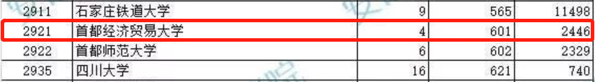 2019年安徽高考,文史类,首都经济贸易大学投档线为601分,分数线超过了北京工业大学、北京化工大学等211高校;